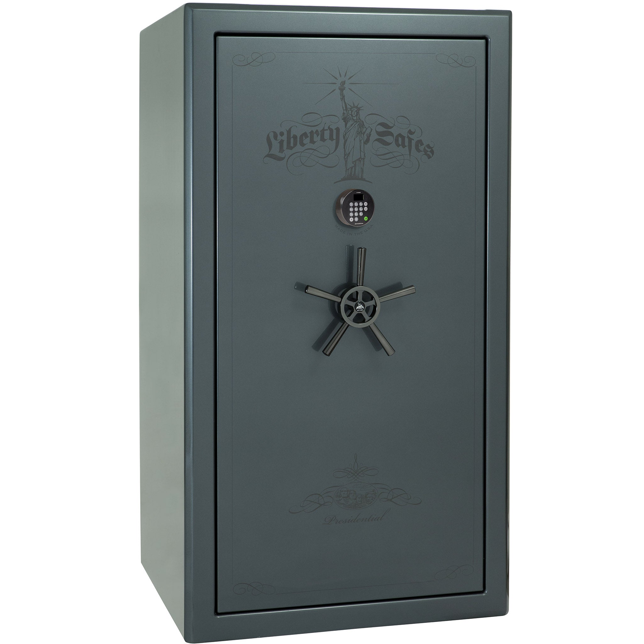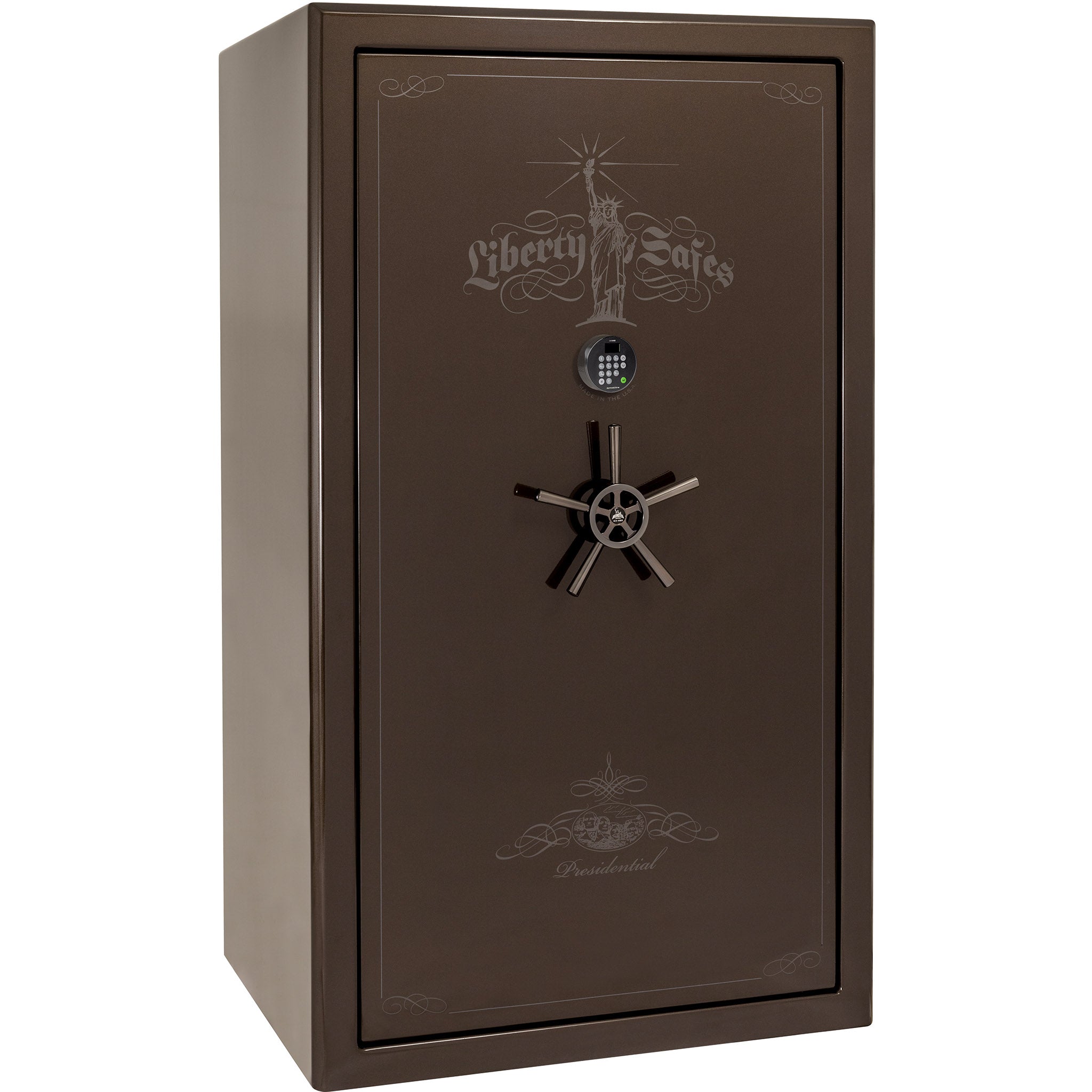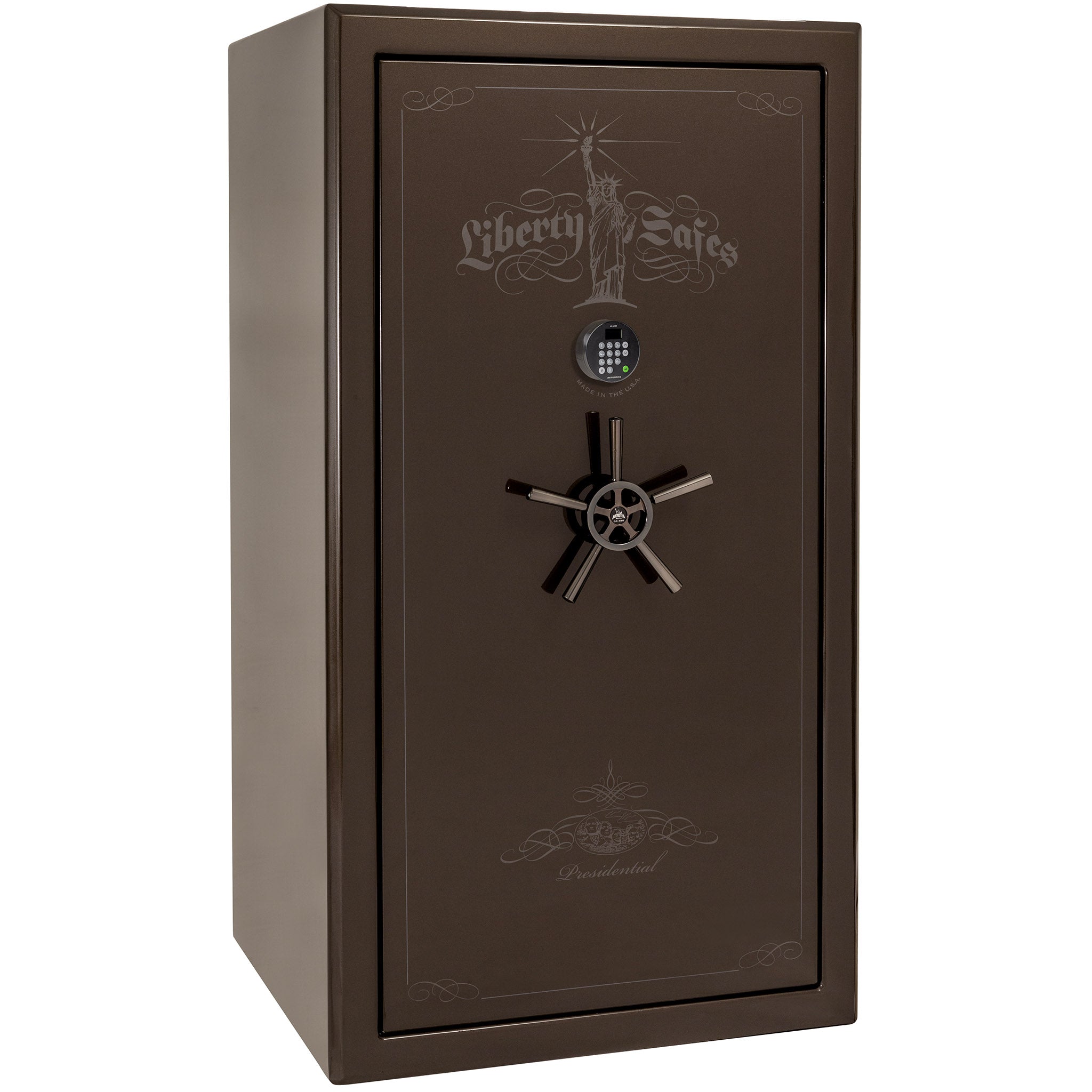 With Liberty’s “best in class” security featuring ultra thick 7 gauge steel and a whopping 2.5 hours of fire protection, the Presidential gun safe has earned the respect of the safe industry and the love of all that purchase one. This safe is designed with security and elegance in mind. Its safe body is made with the thickest, heaviest American-made steel.