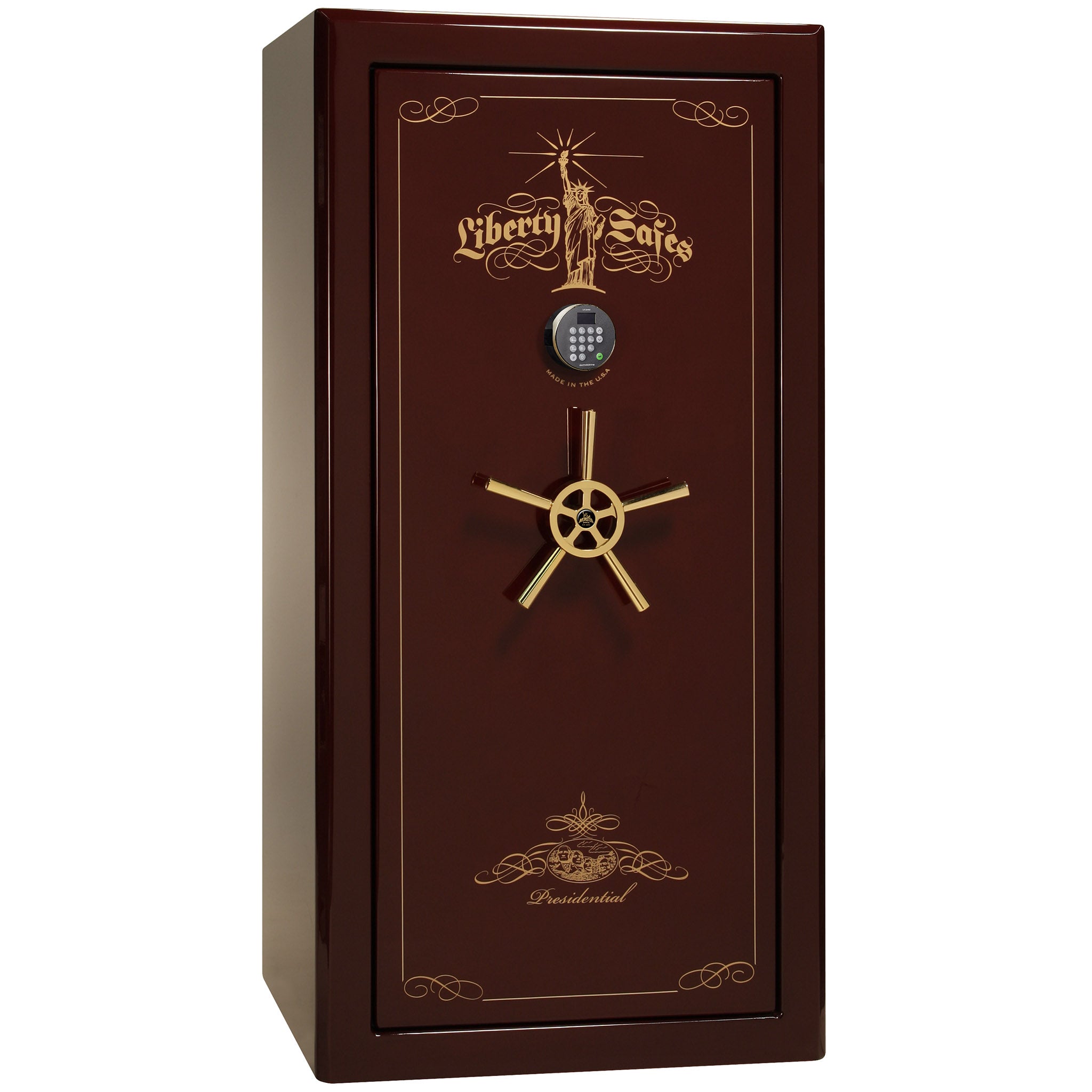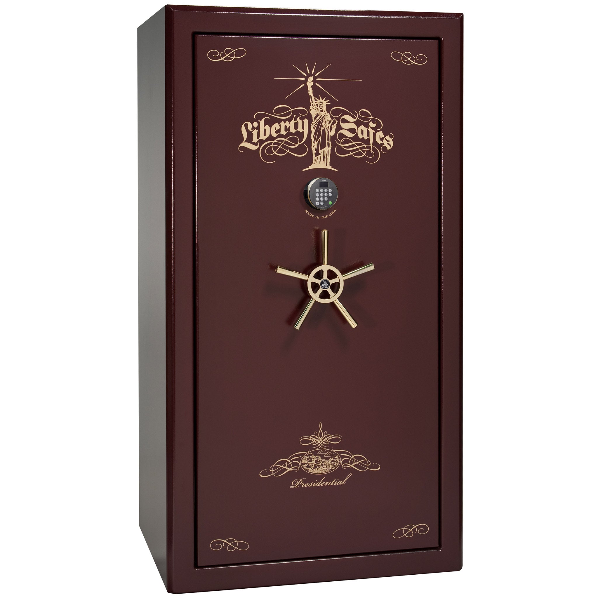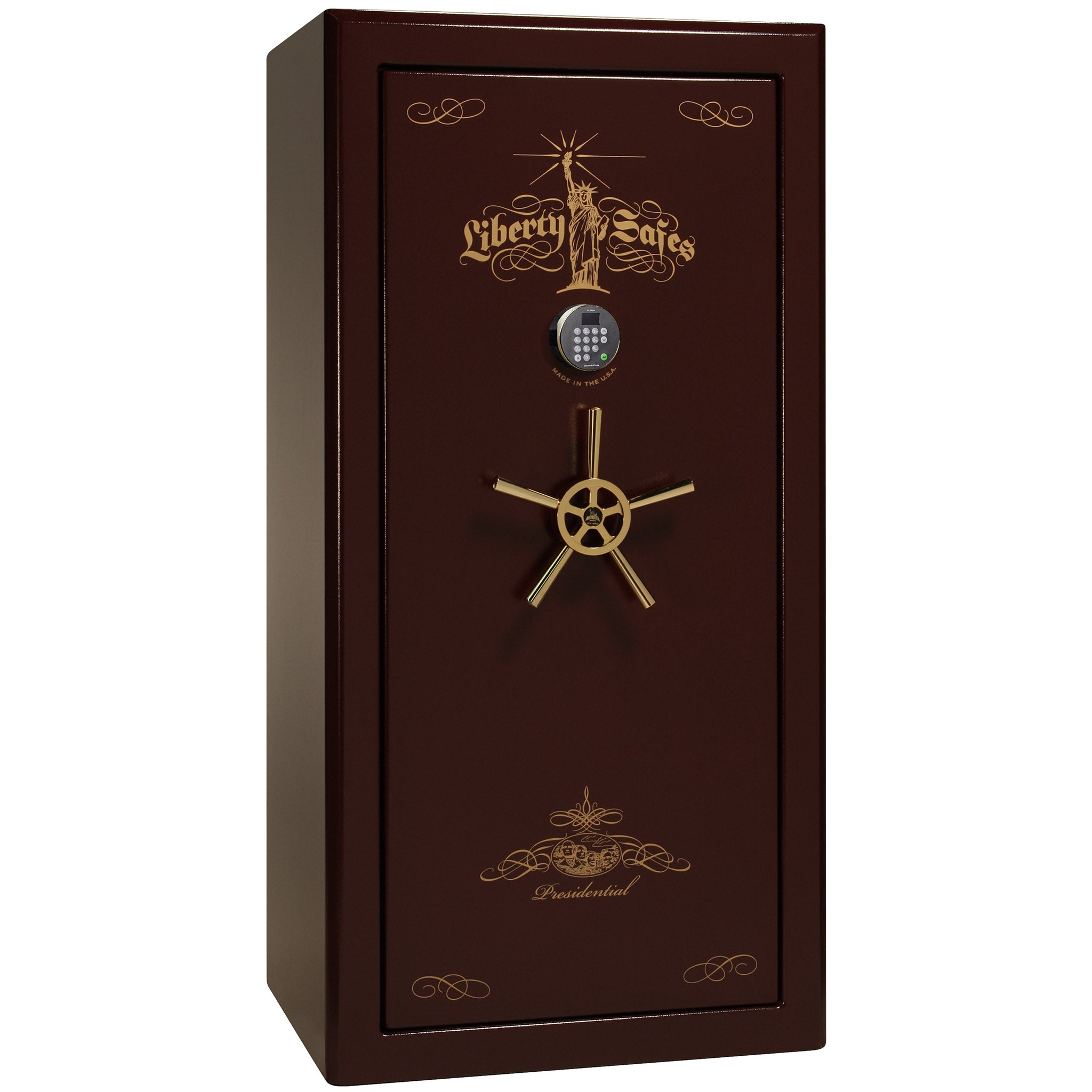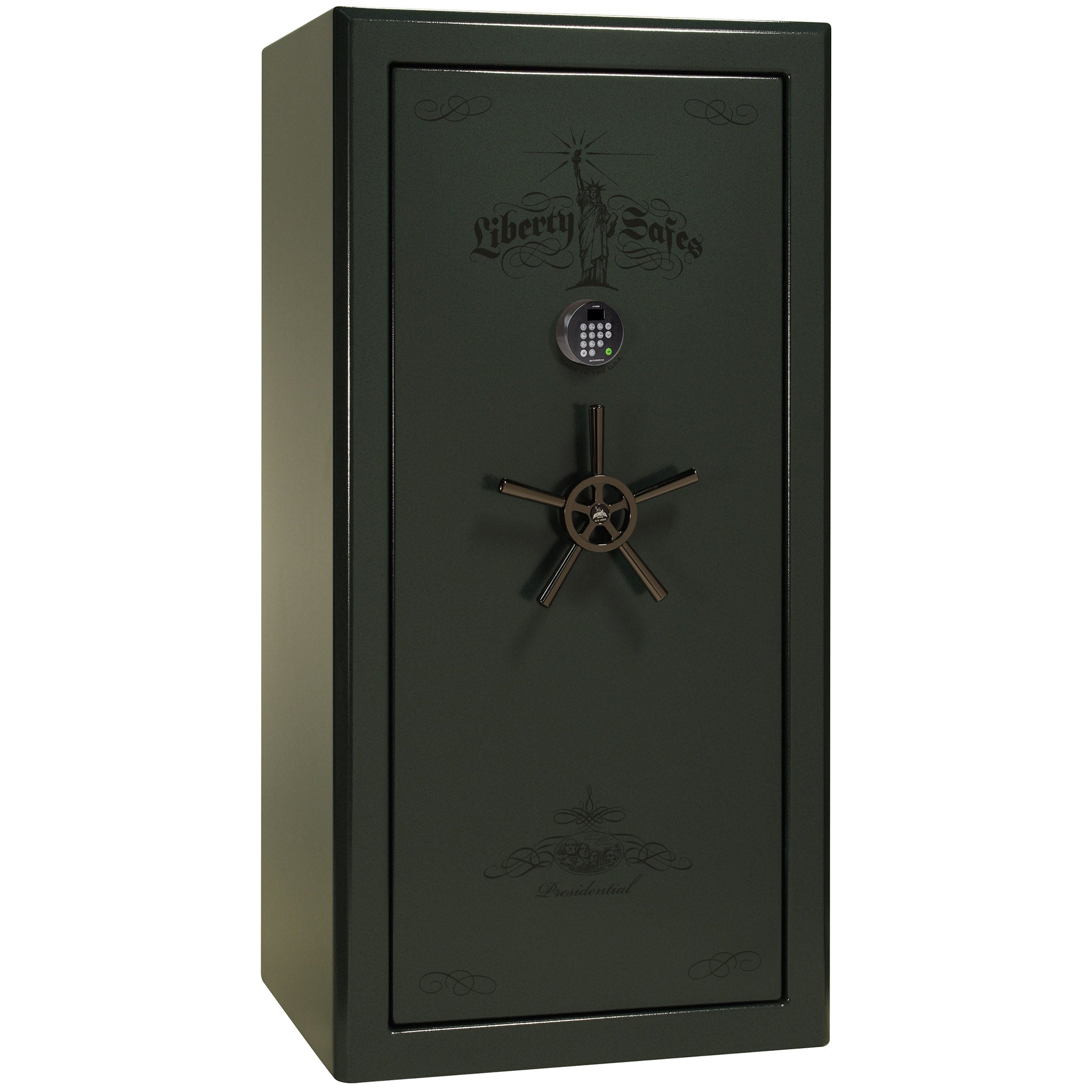 With Liberty’s “best in class” security featuring ultra thick 7 gauge steel and a whopping 2.5 hours of fire protection, the Presidential gun safe has earned the respect of the safe industry and the love of all that purchase one. This safe is designed with security and elegance in mind. Its safe body is made with the thickest, heaviest American-made steel.